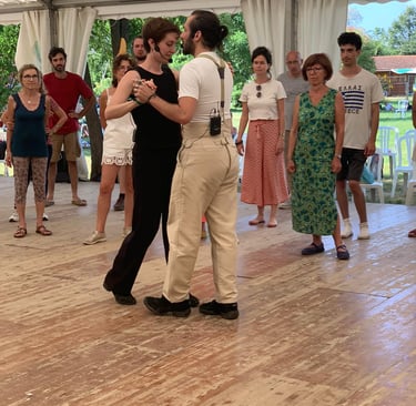 Vous apprendrez l'art de la danse à deux, pour rendre vos danses magiques. Nous utiliserons des pas de bases simples de danses folk (mazurka, scottish) de forro ou de tango, pour apprendre une position de danse confortable, guider et suivre, des variations, la musicalité,