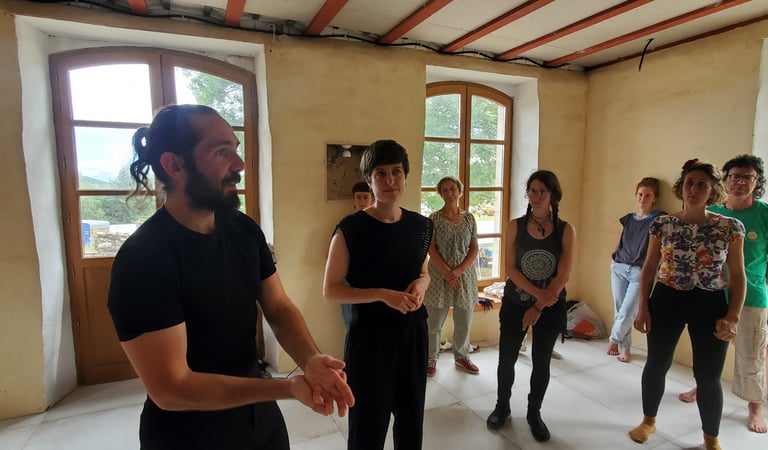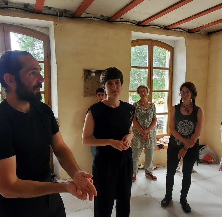 "Naviguant entre différentes danses (contemporaine et folk) et les arts martiaux depuis l’enfance, j’ai envie de partager une danse qui explore la sensibilité, la connexion à la musique et la relation à l’autre. Je suis également herboriste, prendre soin de soi et de l’autre a une grande place dans ma vie."