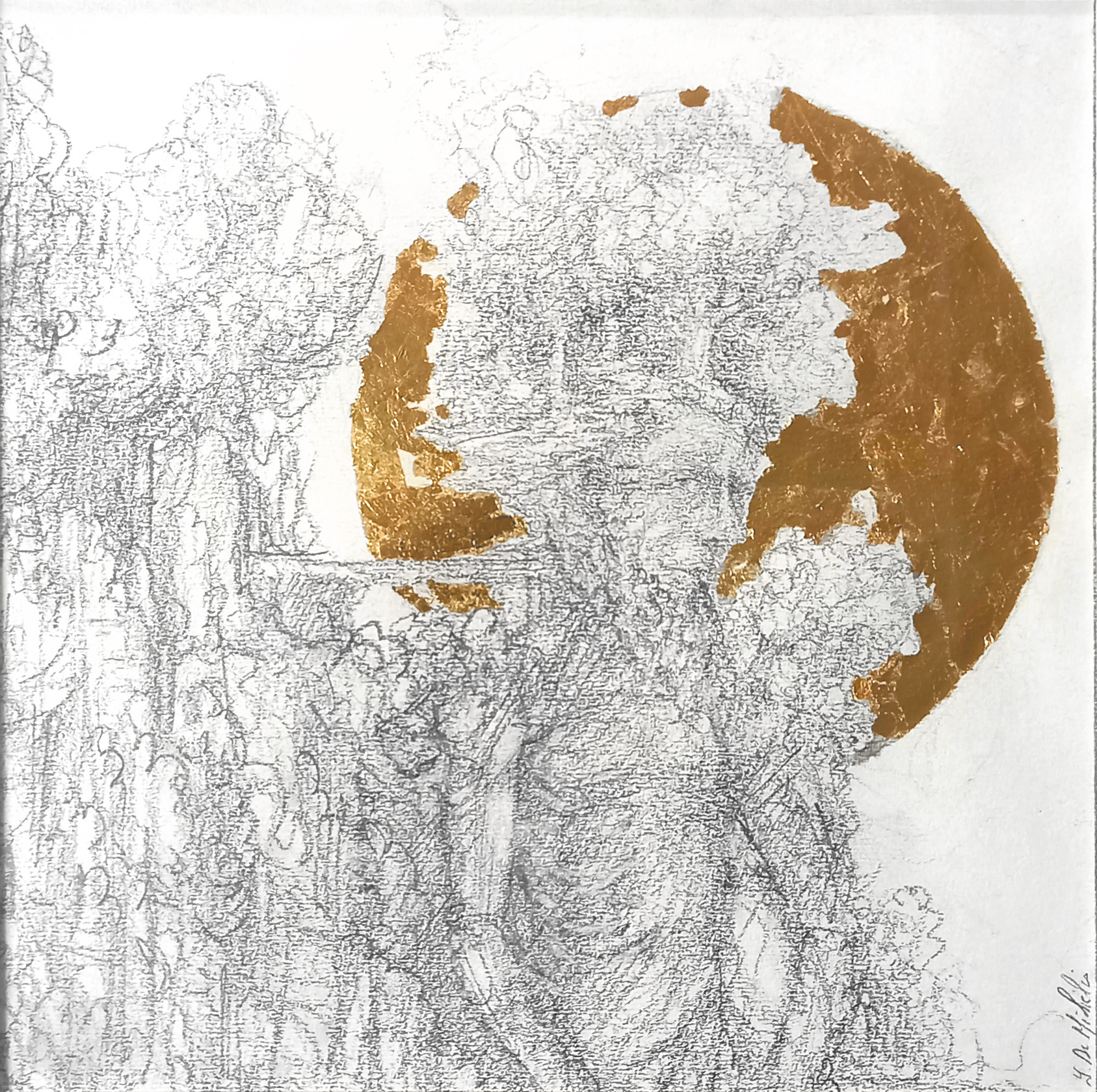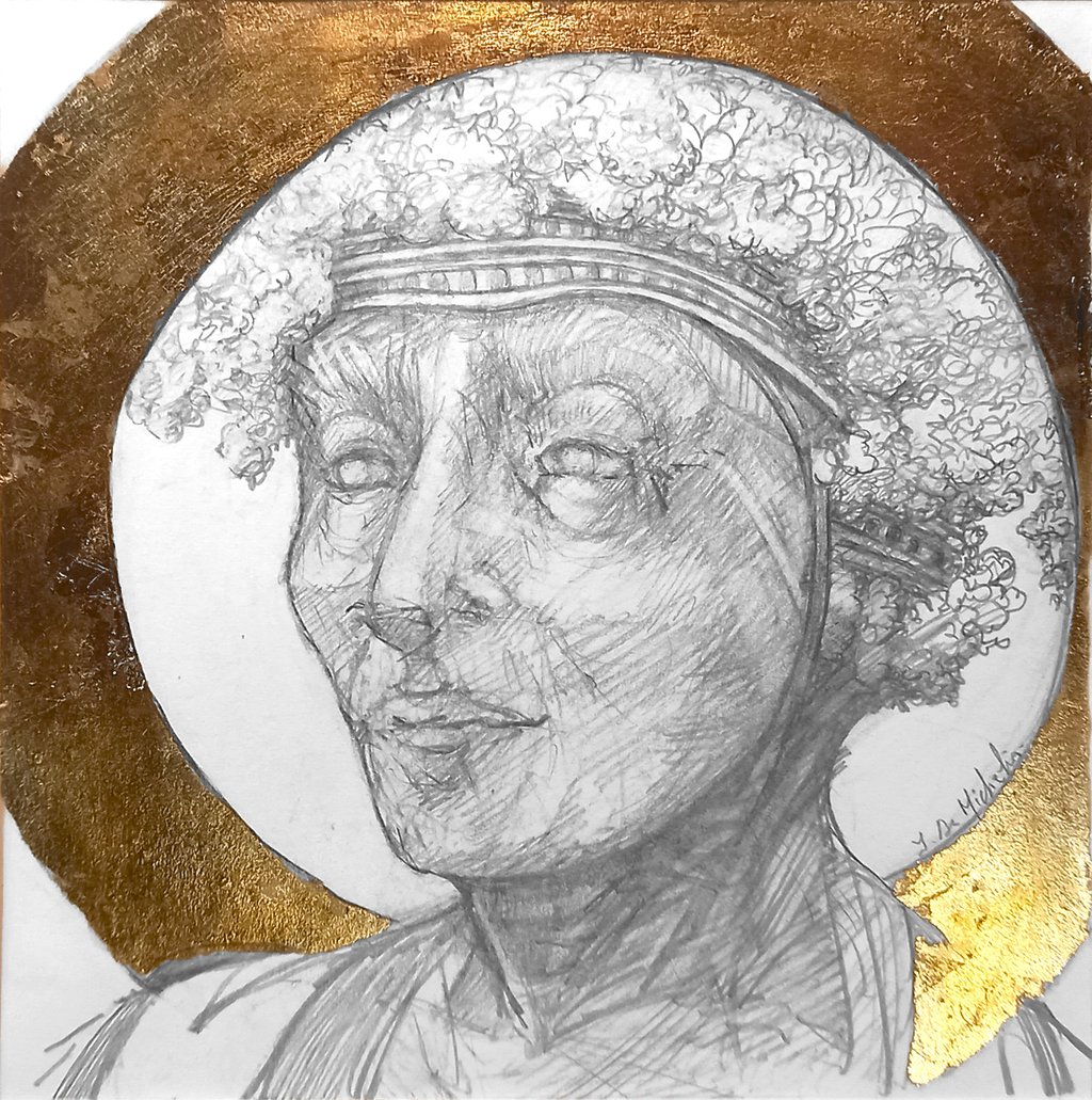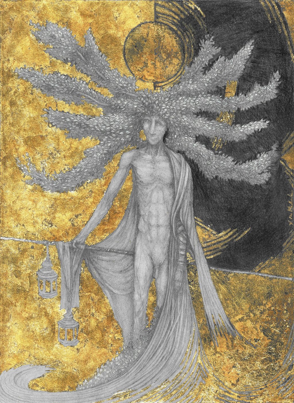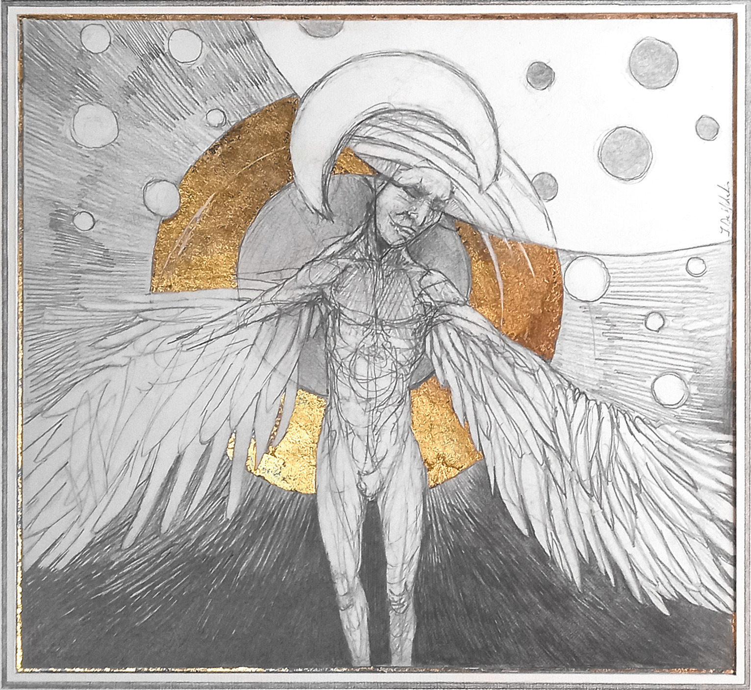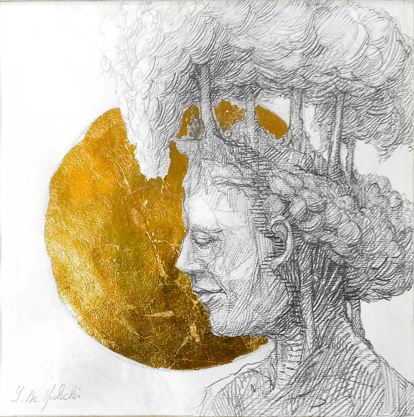 Dessin à la mine de plomb, graphite et dorure.