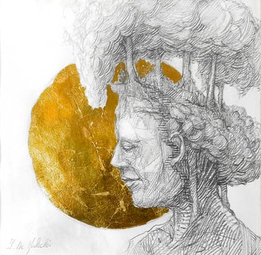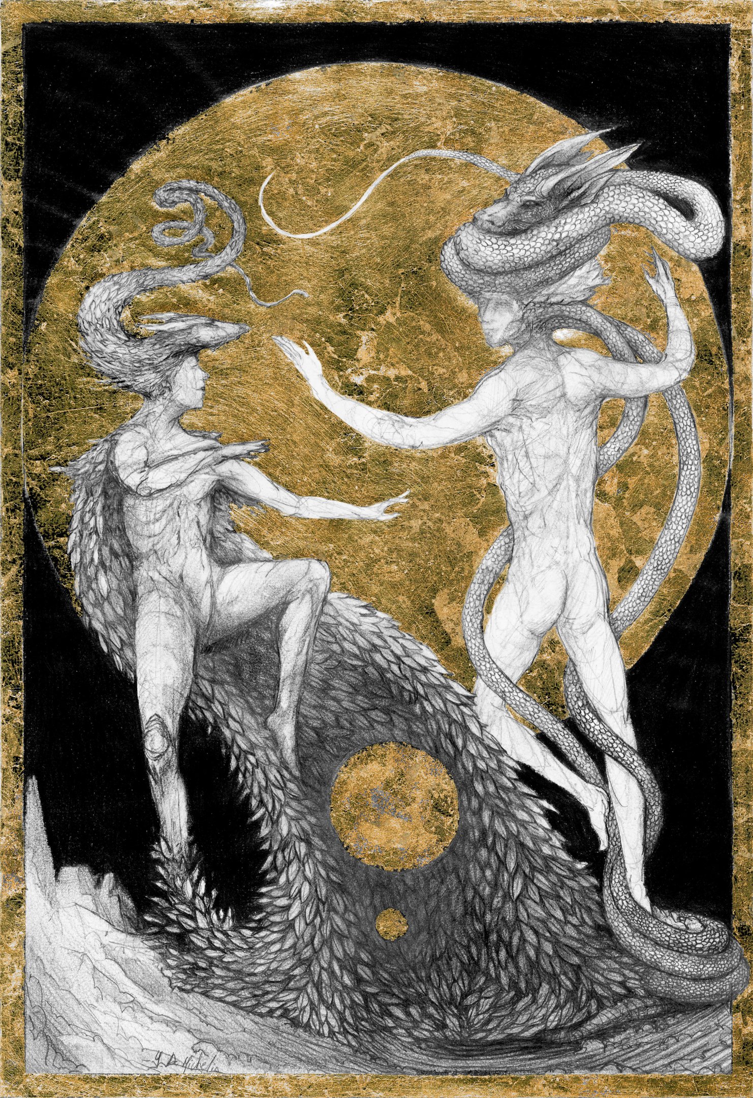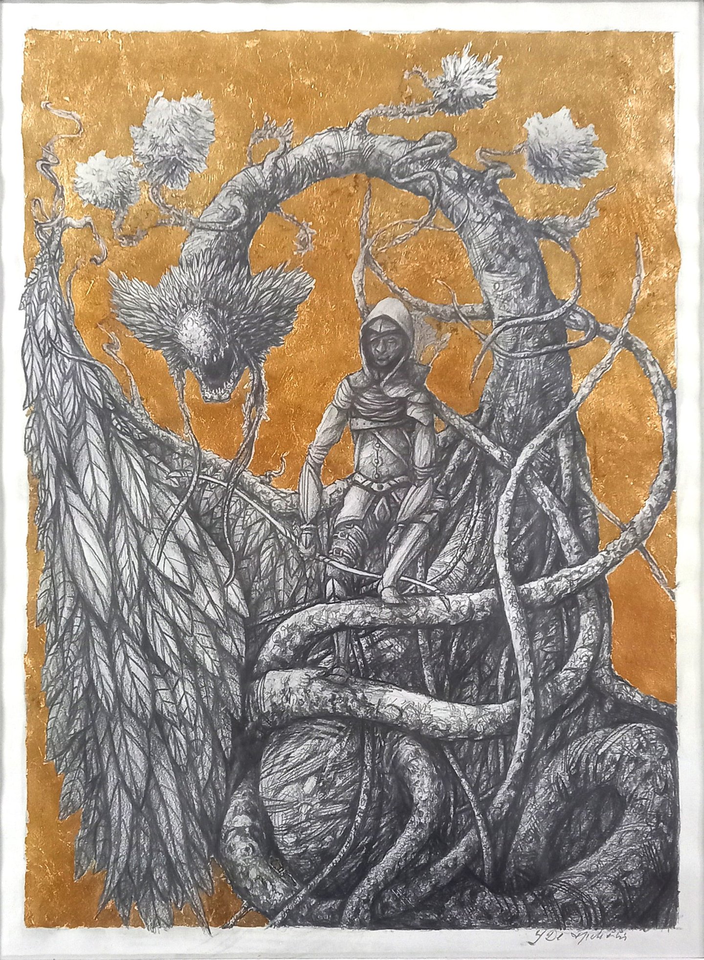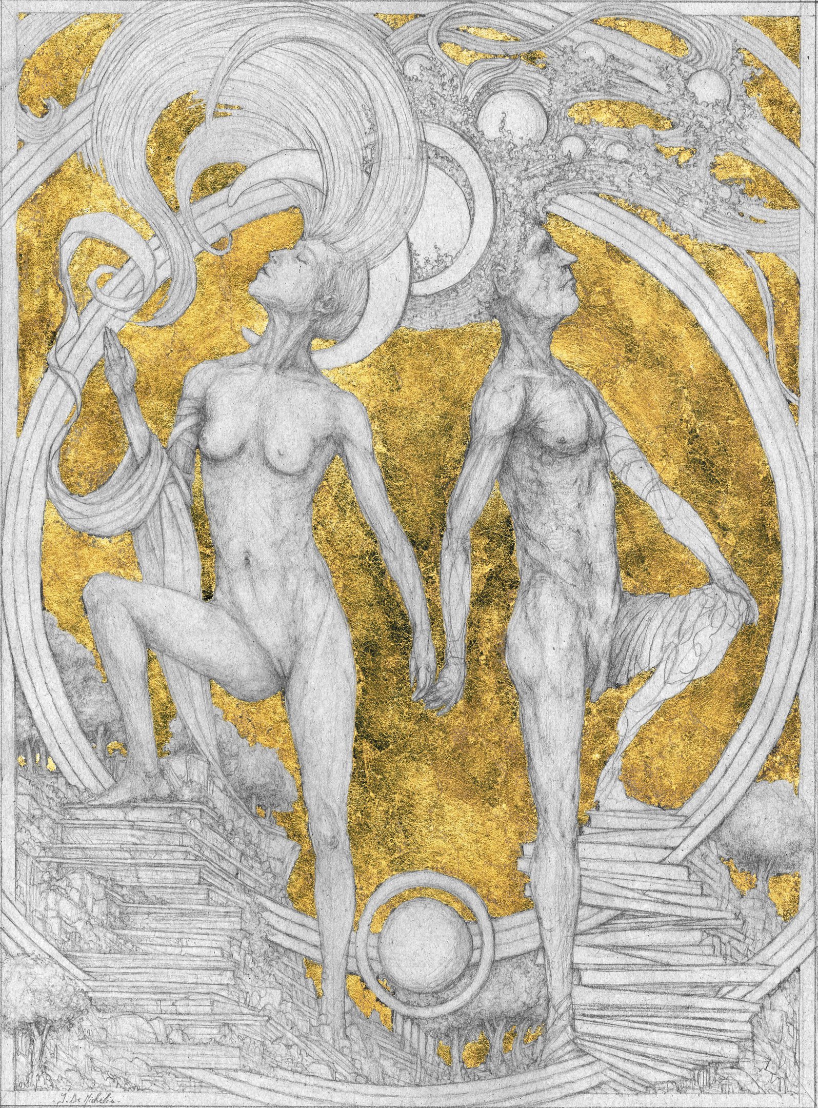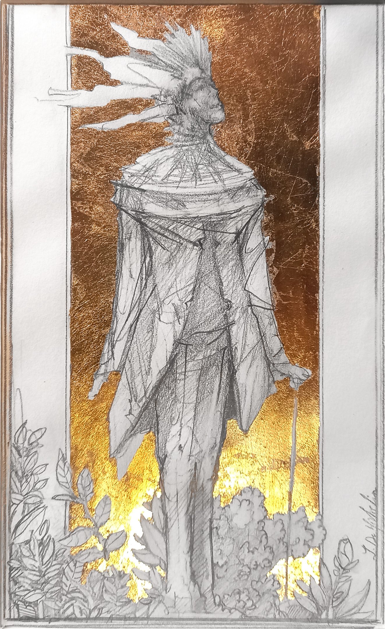 Dessin à la mine de plomb, graphite et dorure.