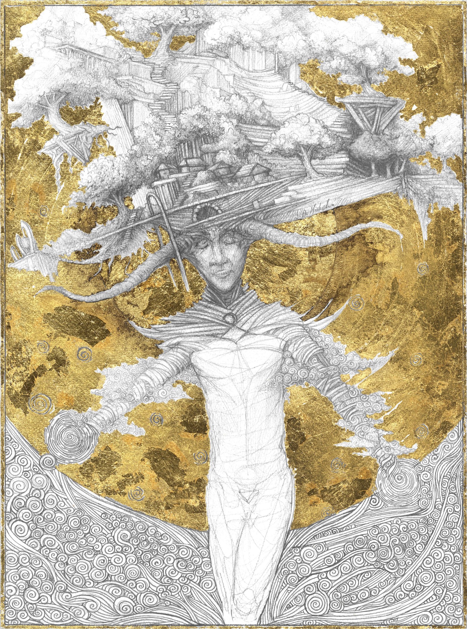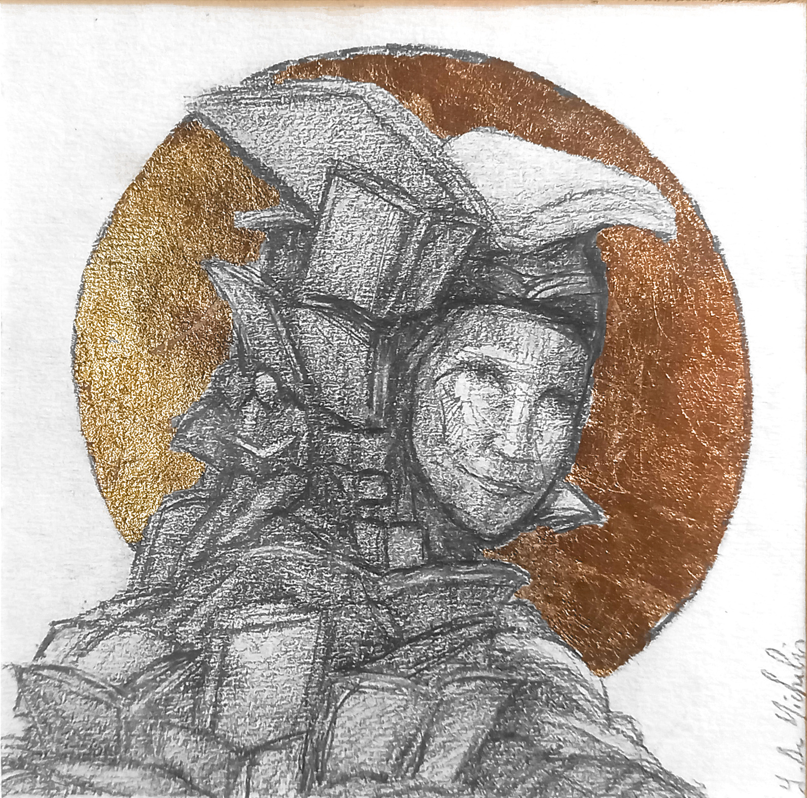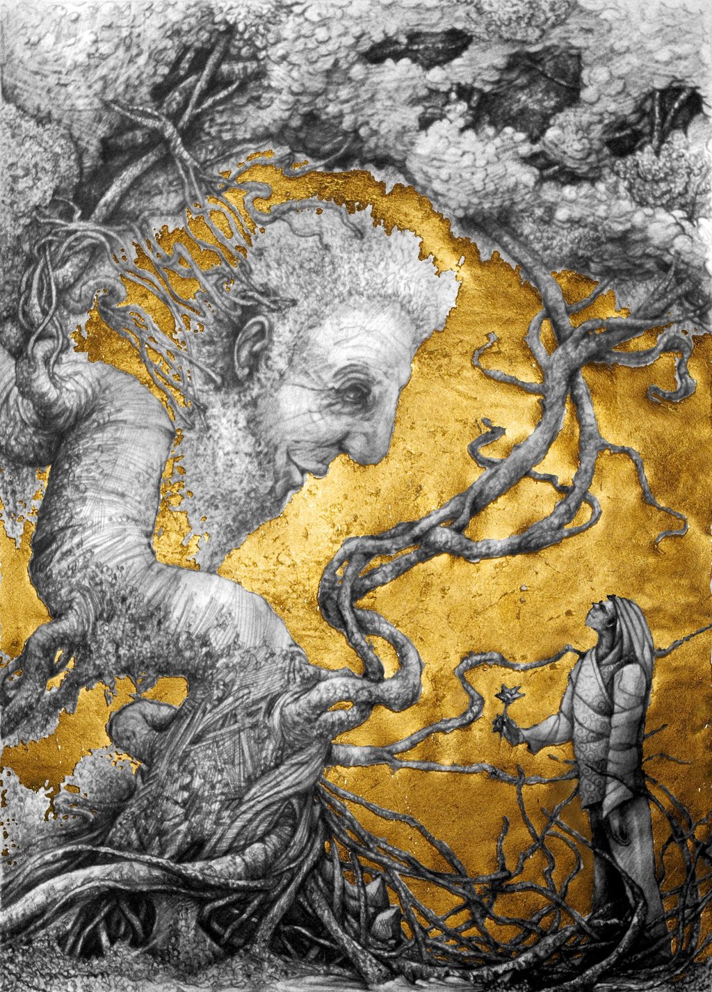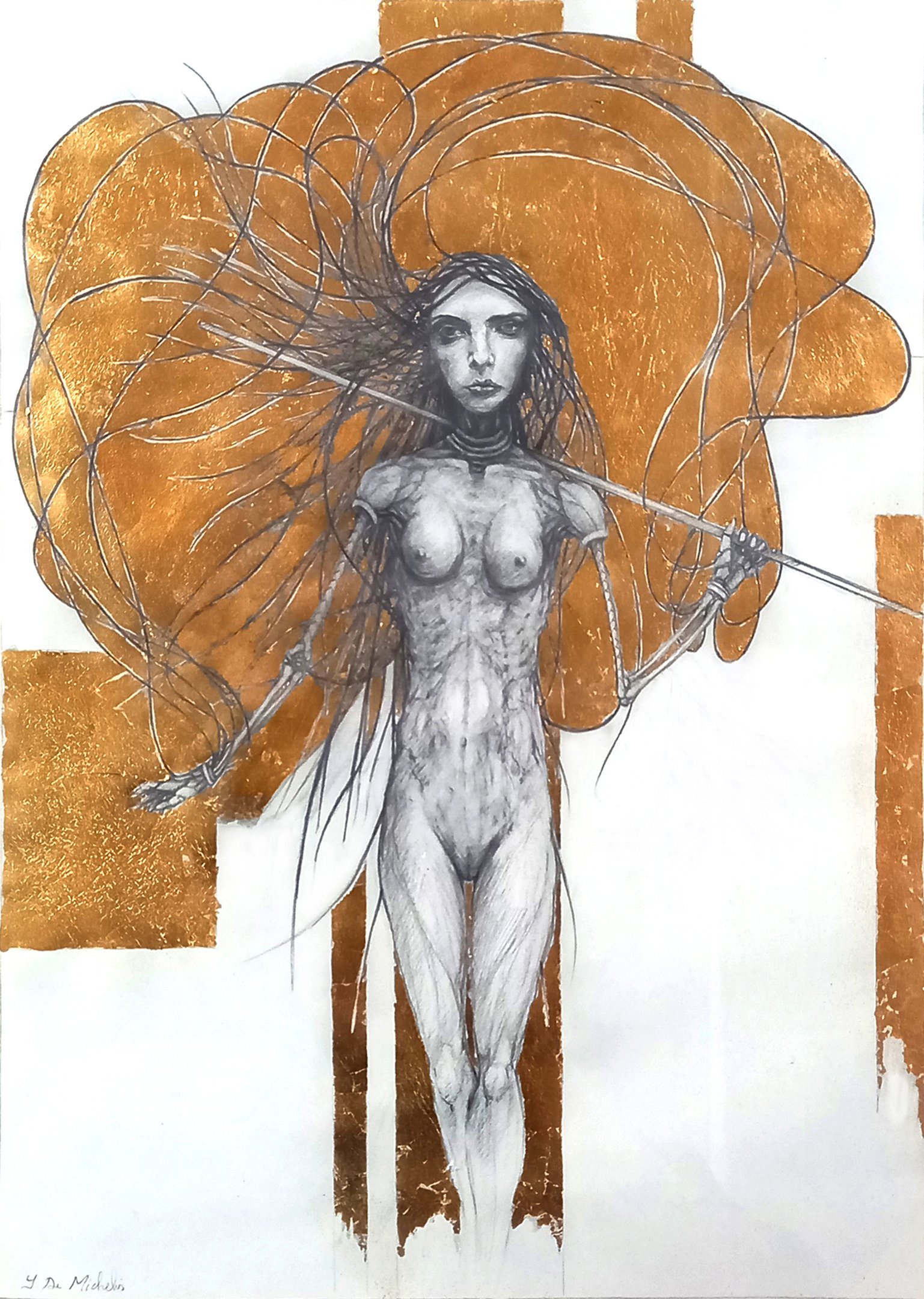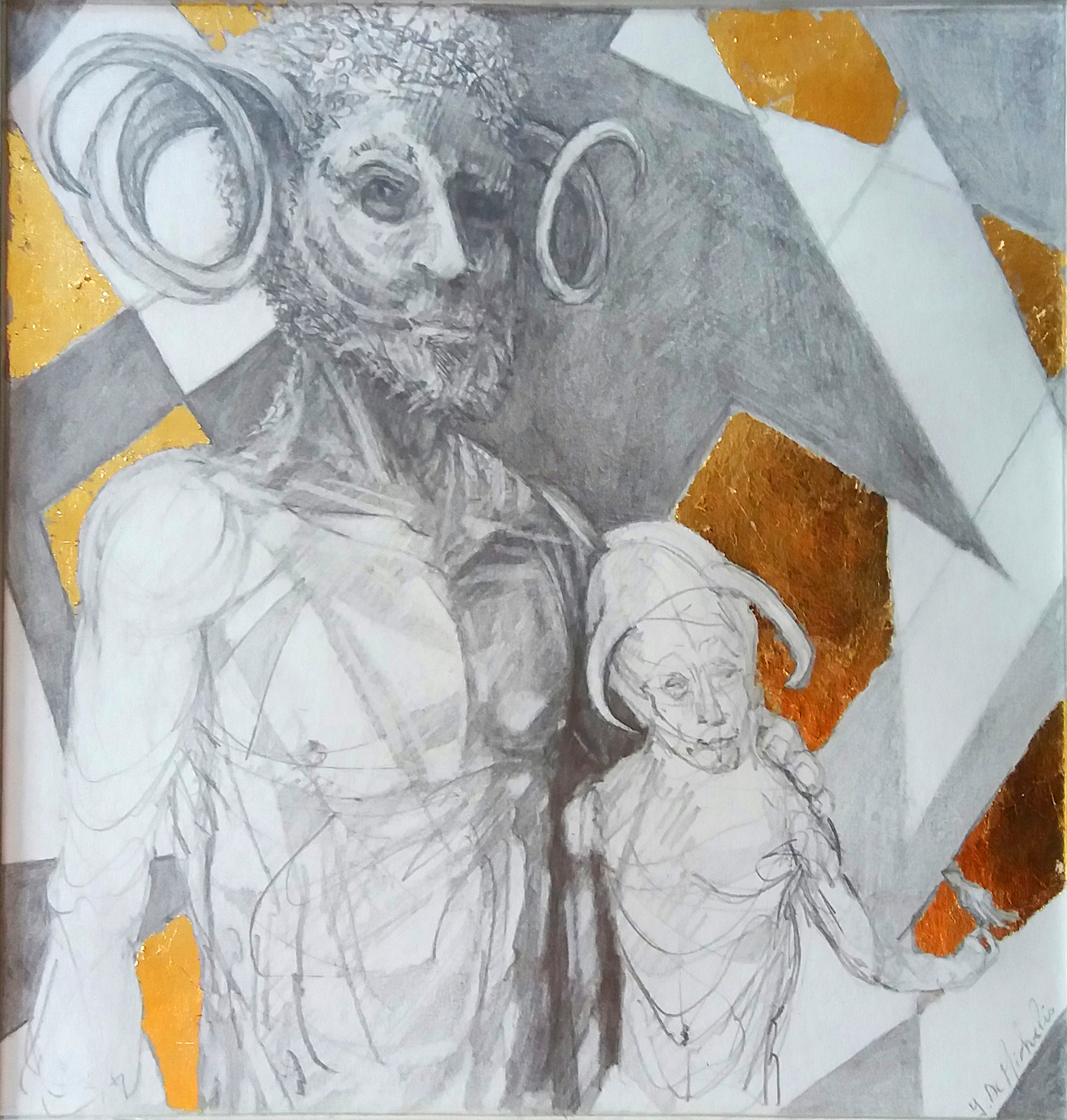 Dessin à la mine de plomb, graphite et dorure.