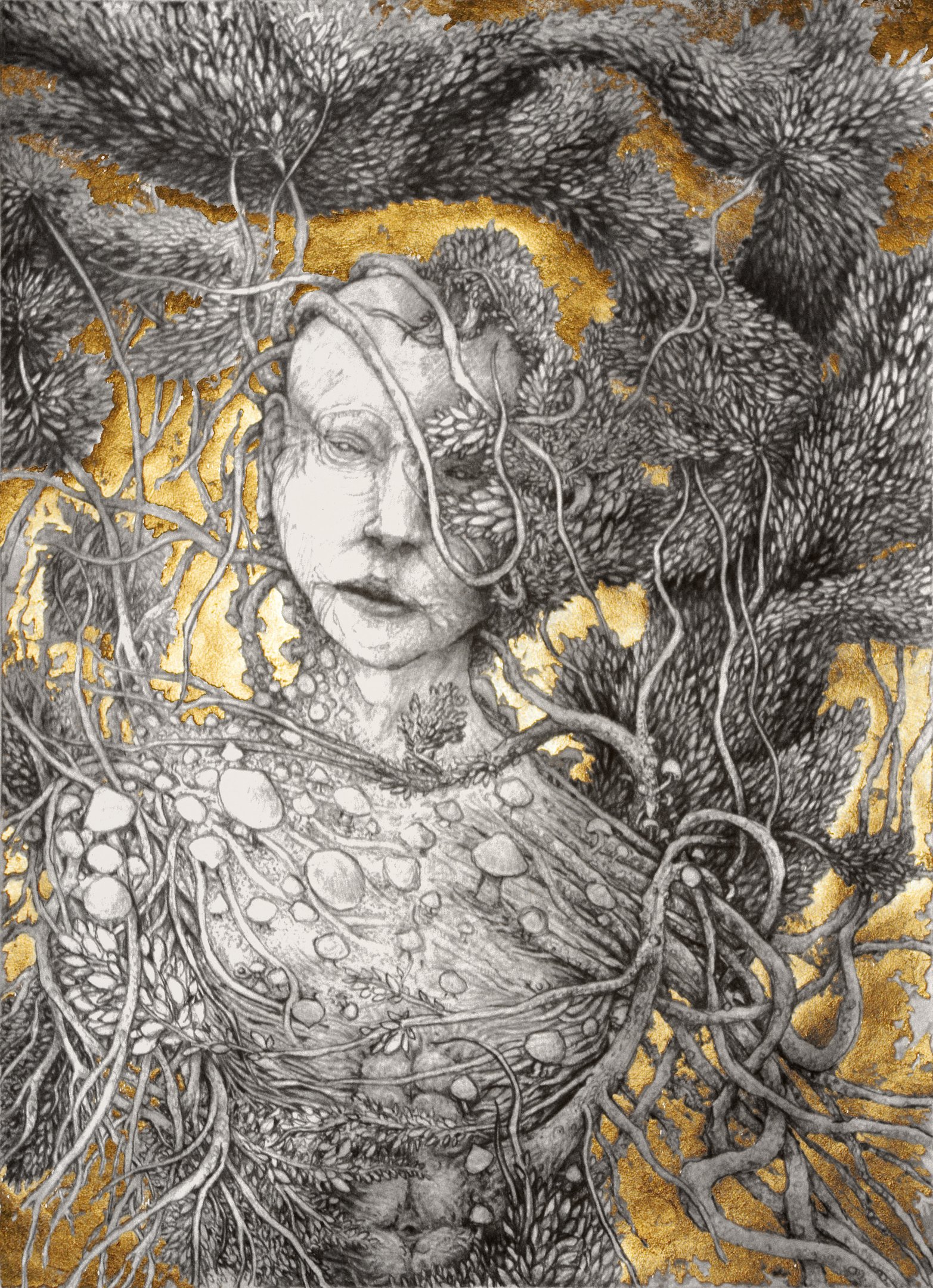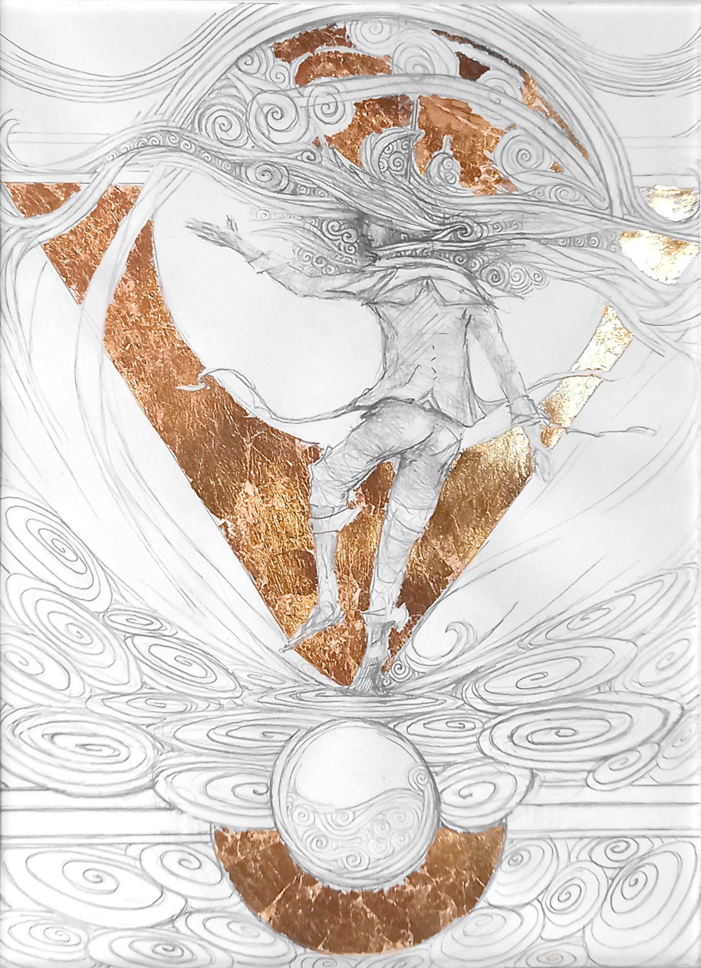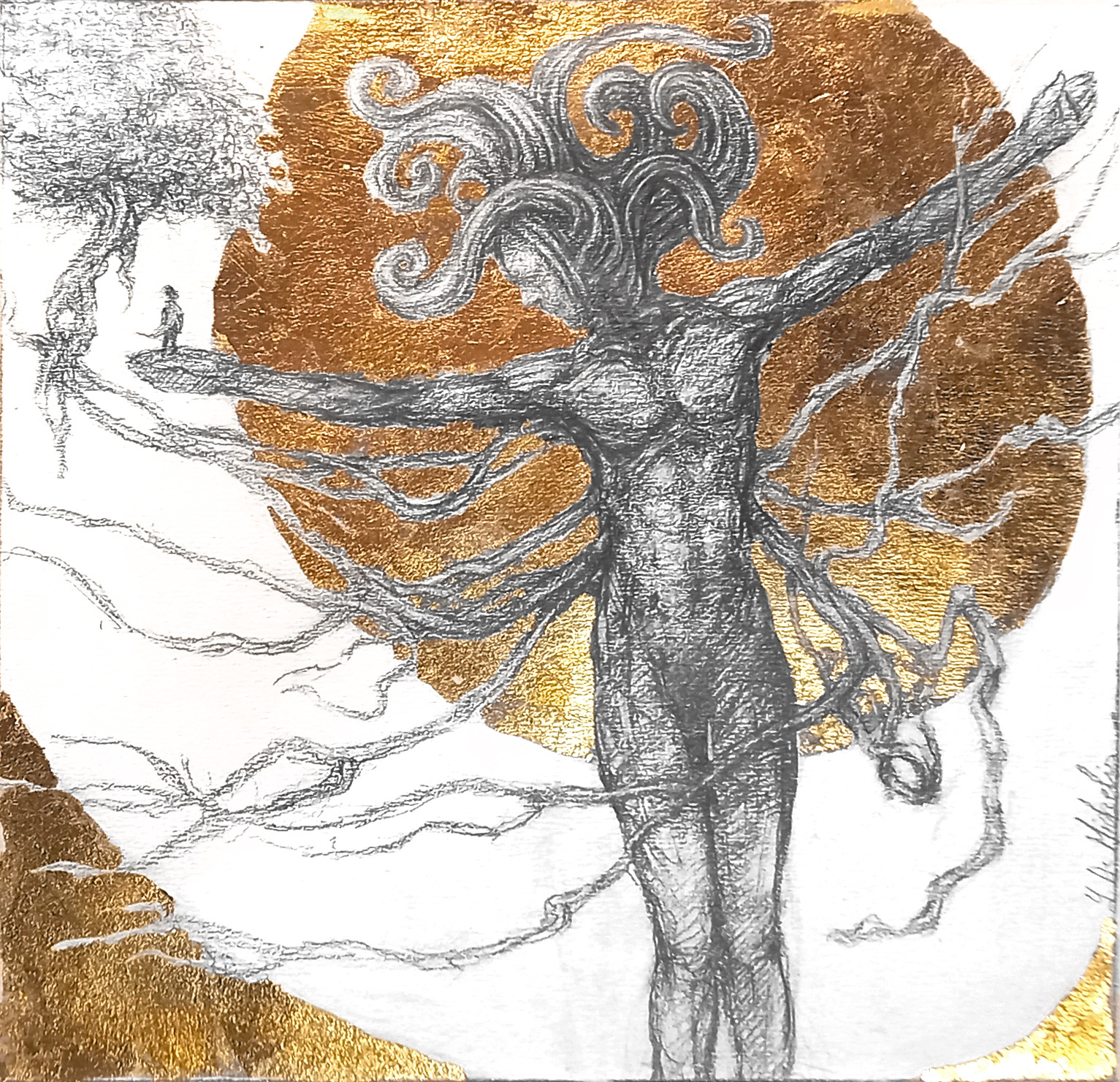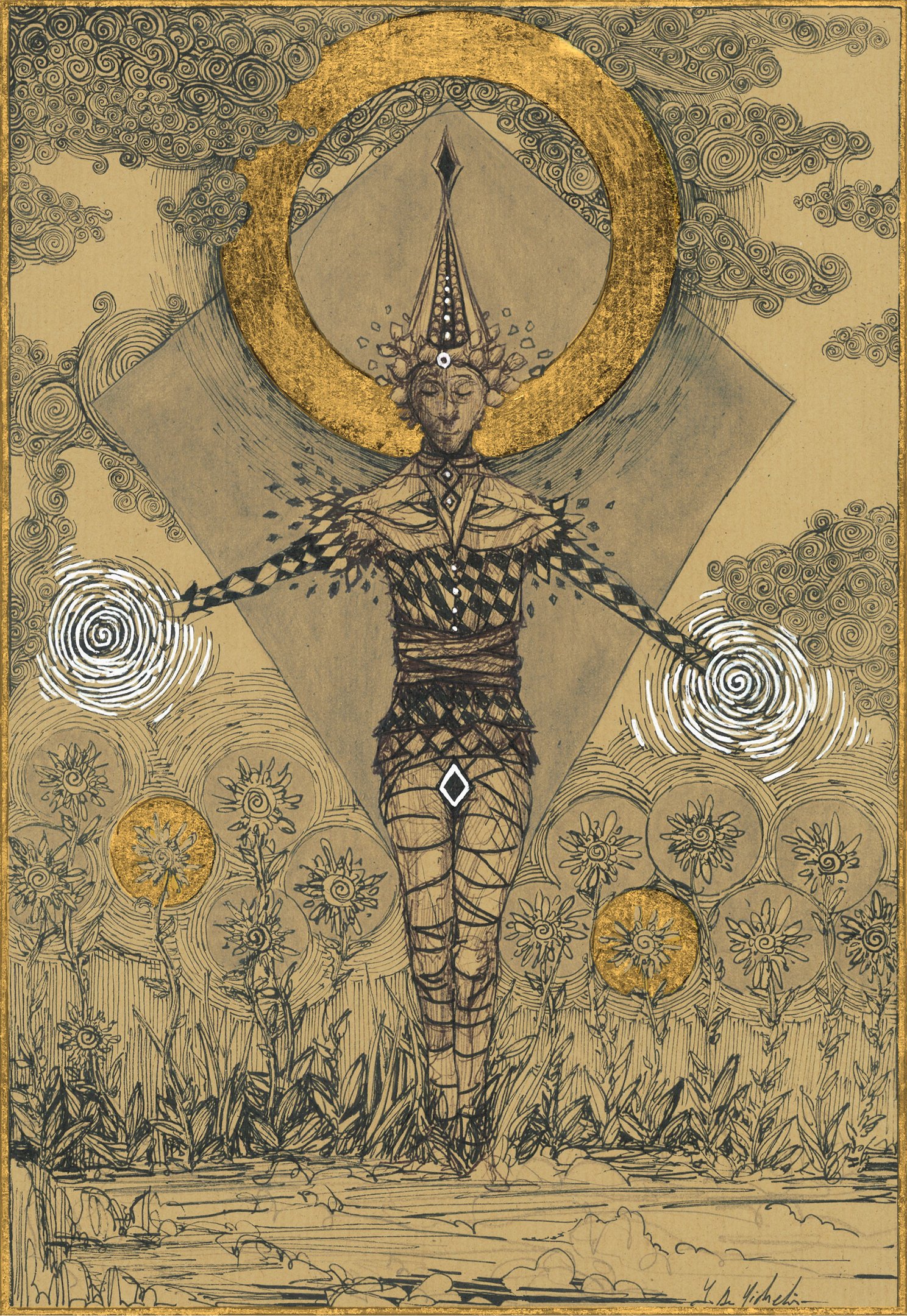 Dessin à la mine de plomb, graphite et dorure.
