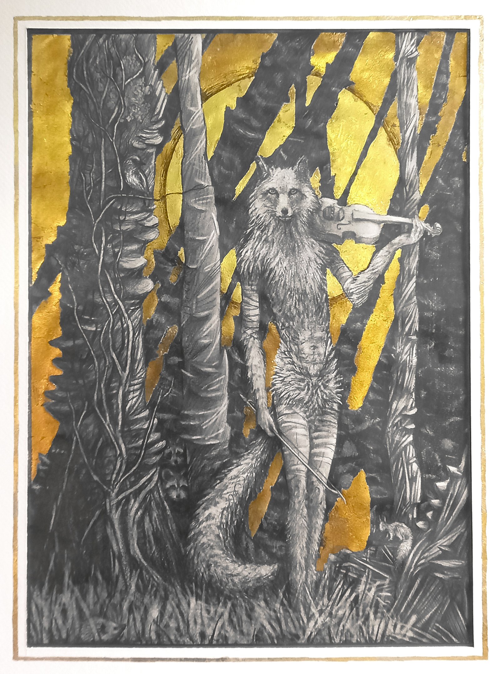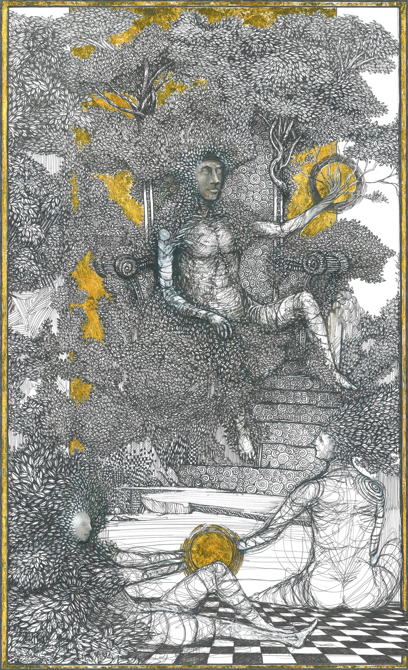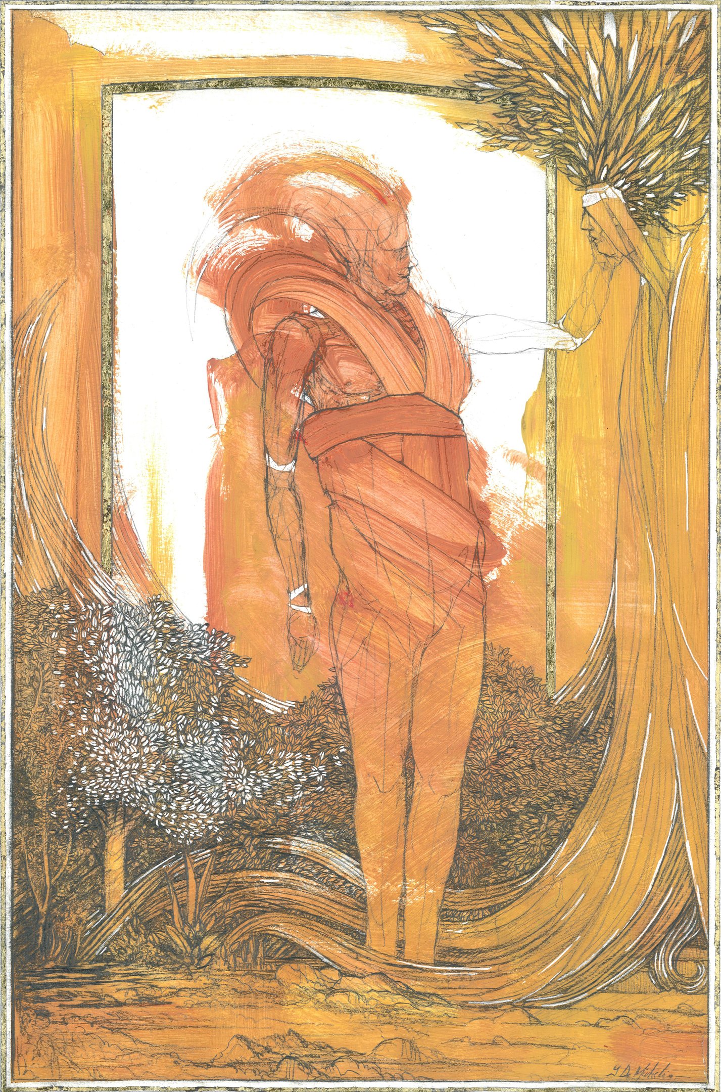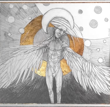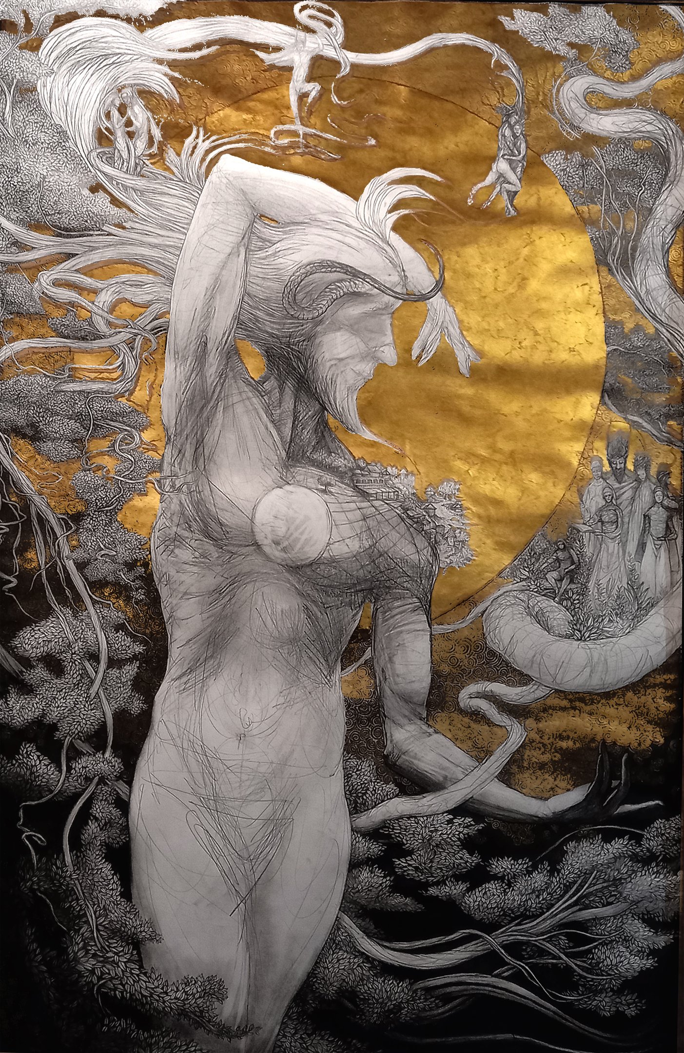 Dessin à la mine de plomb, graphite et dorure.