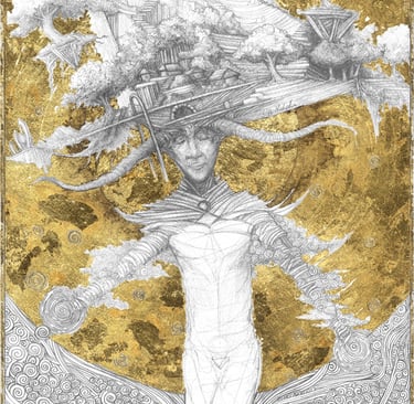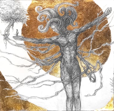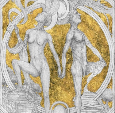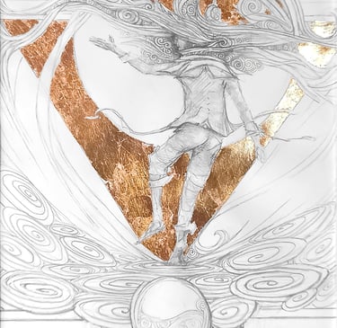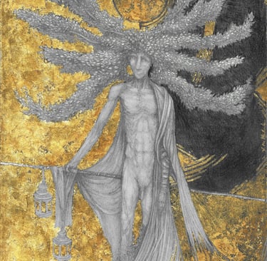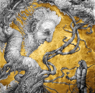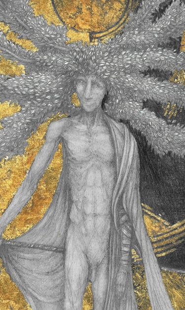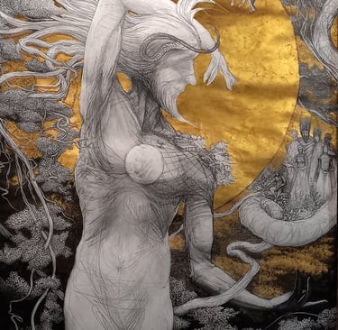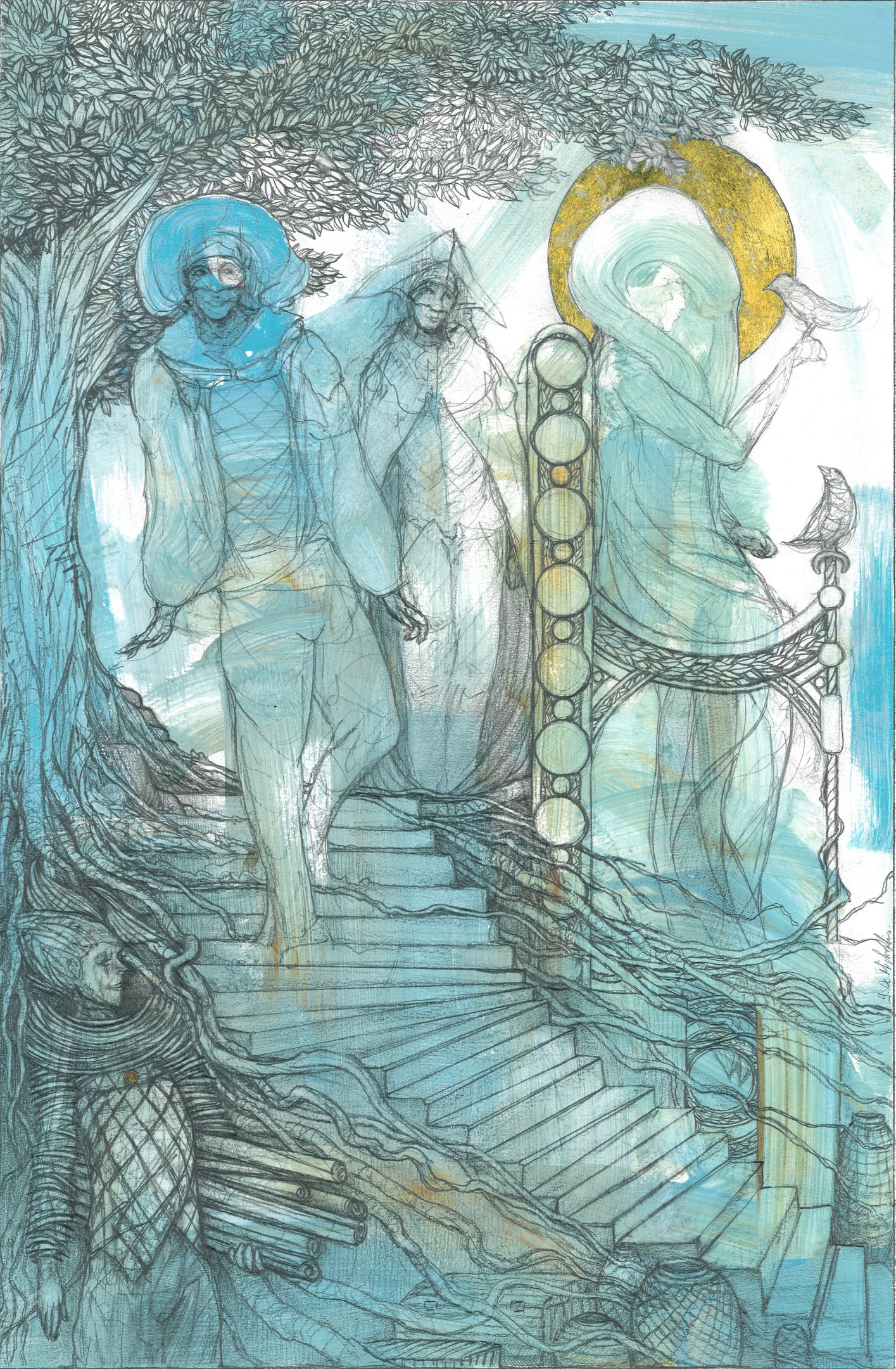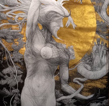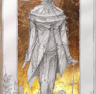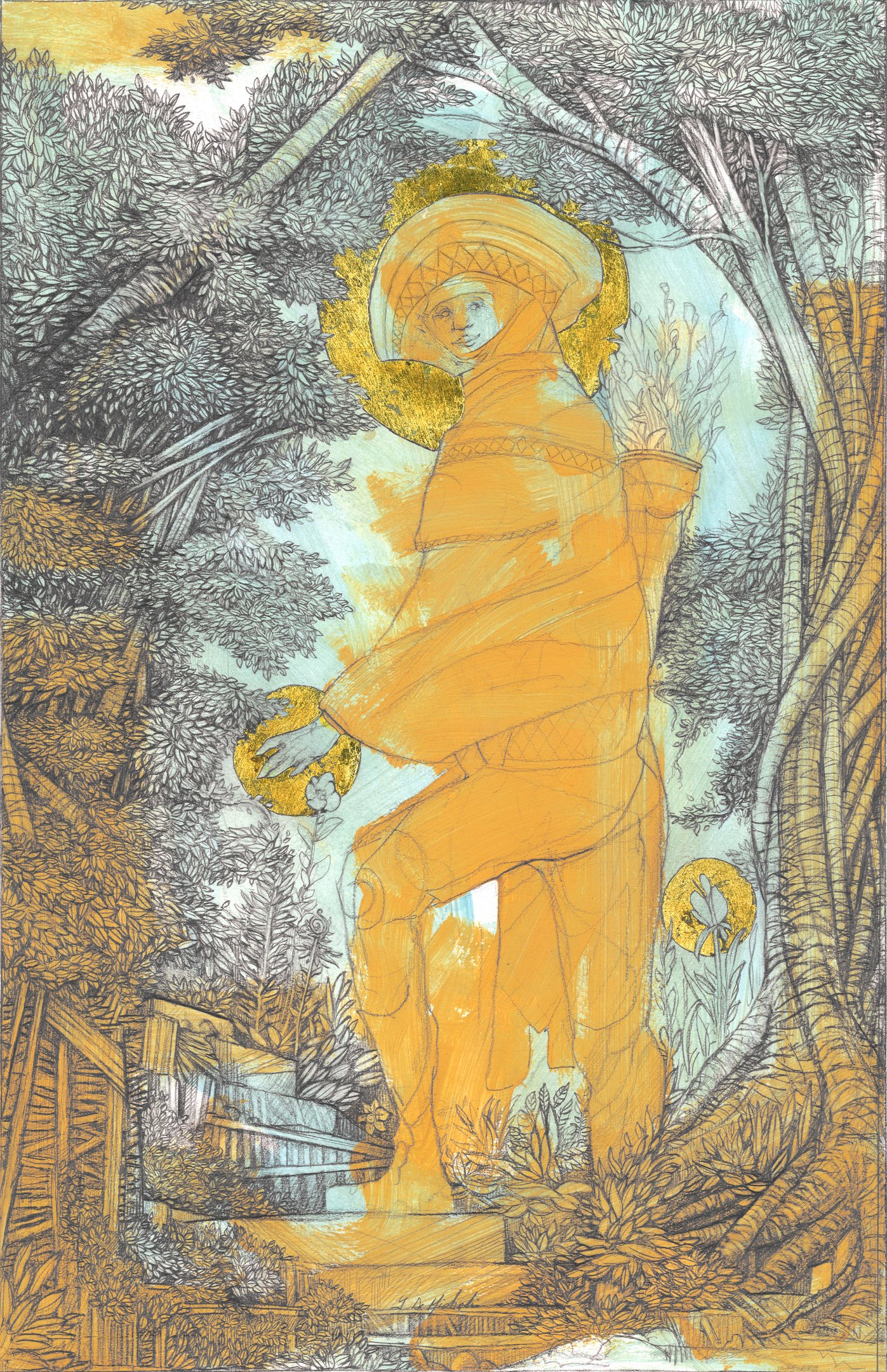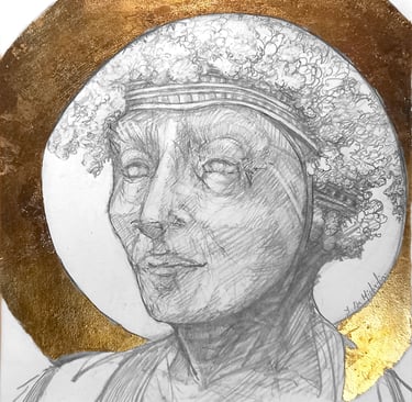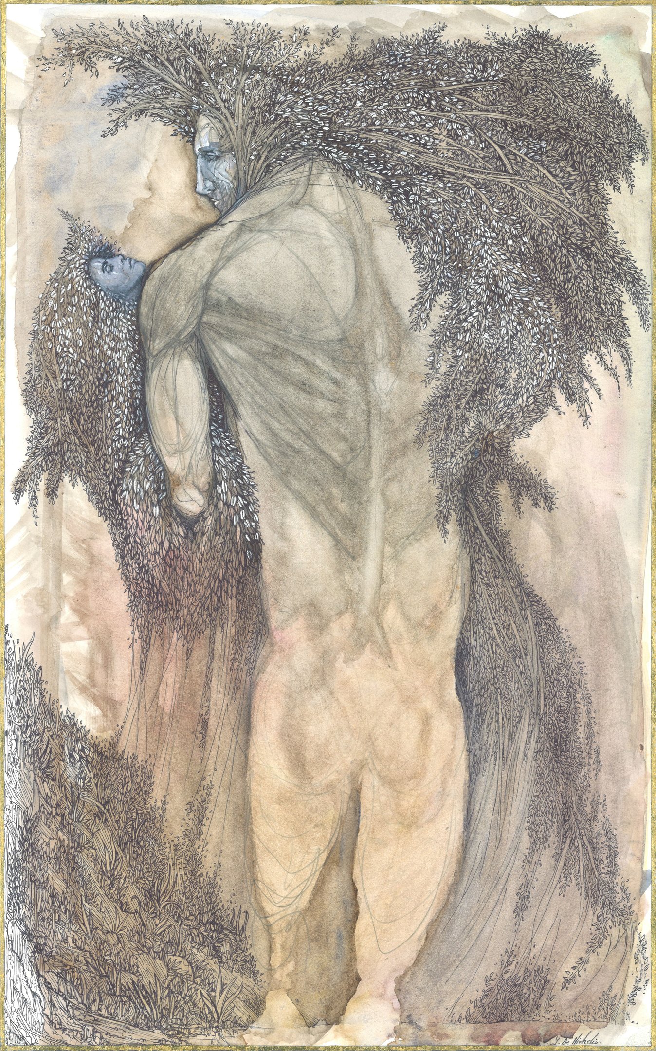 Dessin à la mine de plomb, graphite et dorure.