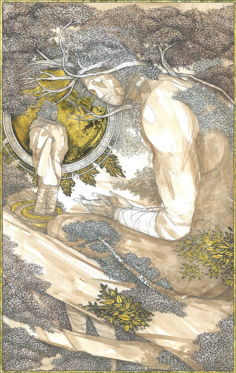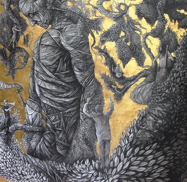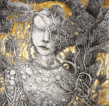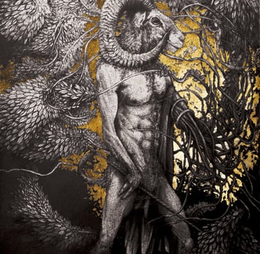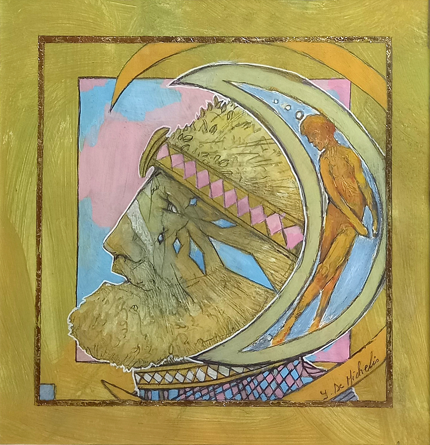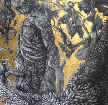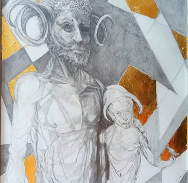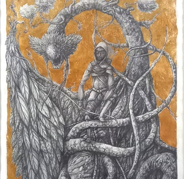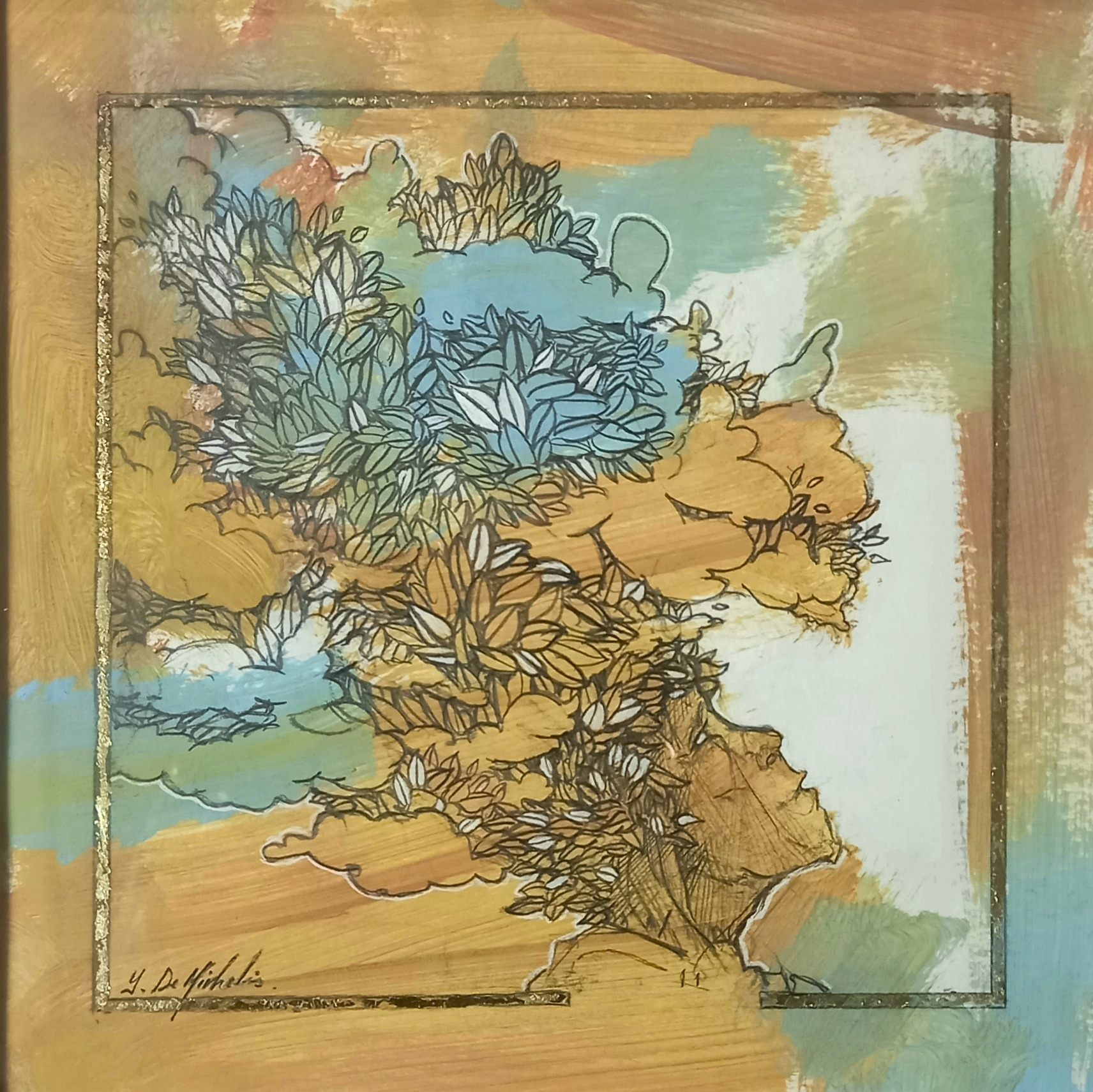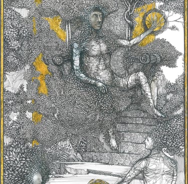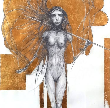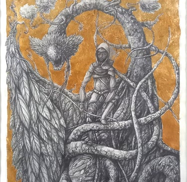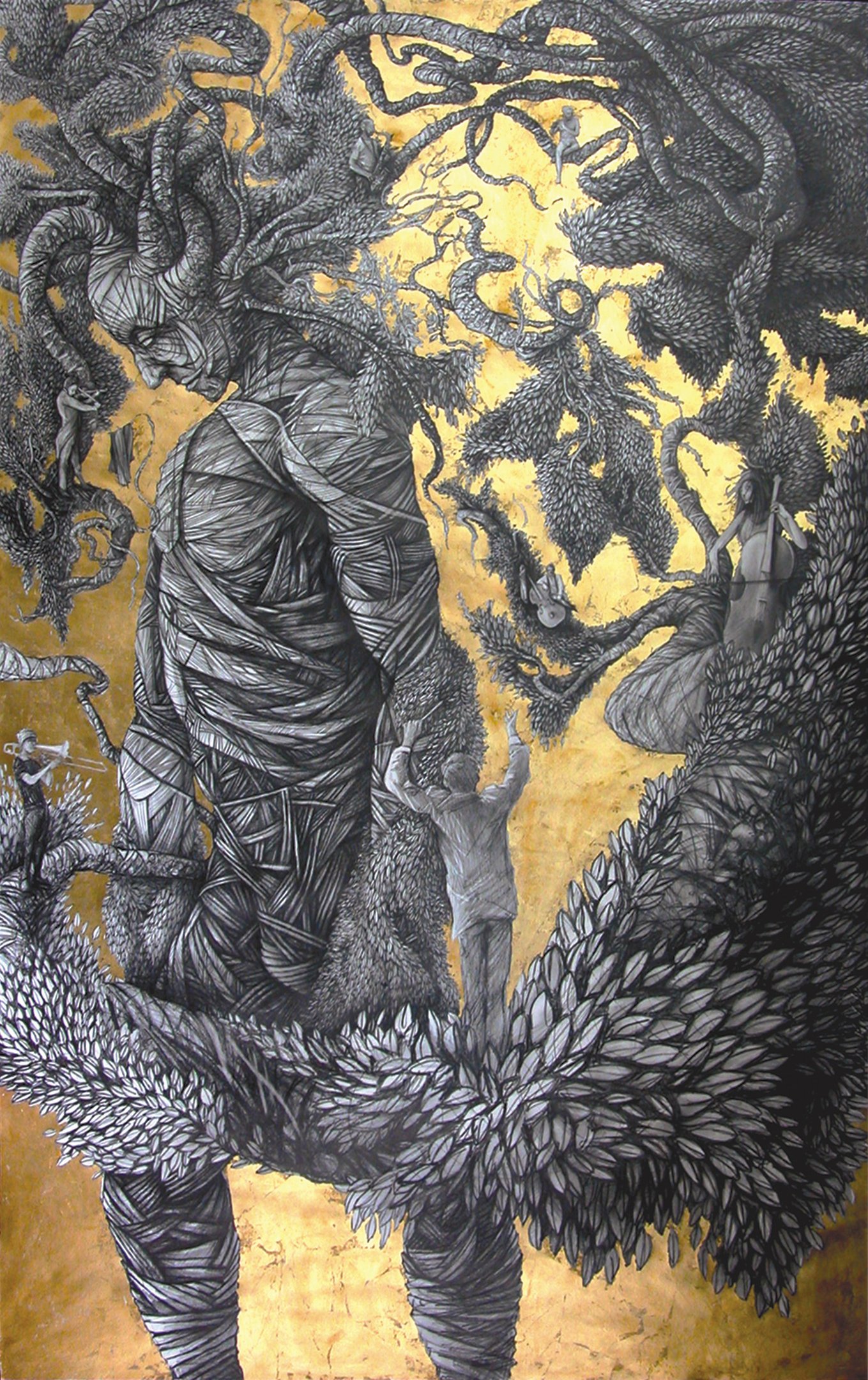 Dessin à la mine de plomb, graphite et dorure.