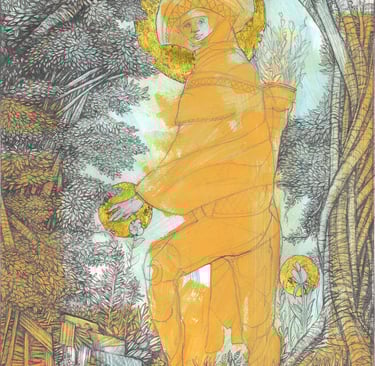Gouaches et encres de couleur.